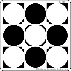 Black and White Circles brass embossing template from The Stencil Collection. Template measures about 3" x 3".
